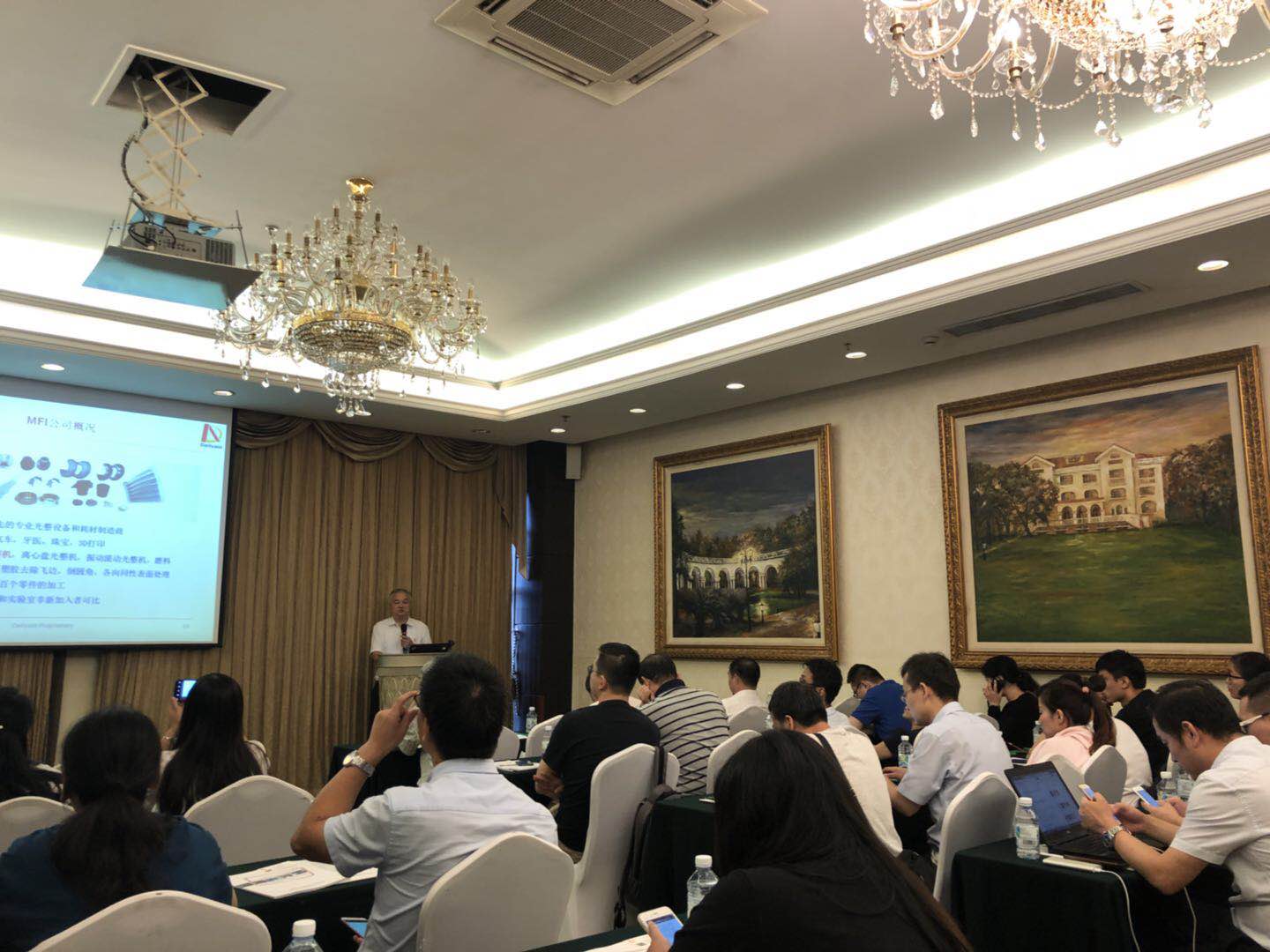 現場(chǎng)座無(wú)虛席,客戶(hù)們認真聆聽(tīng)。